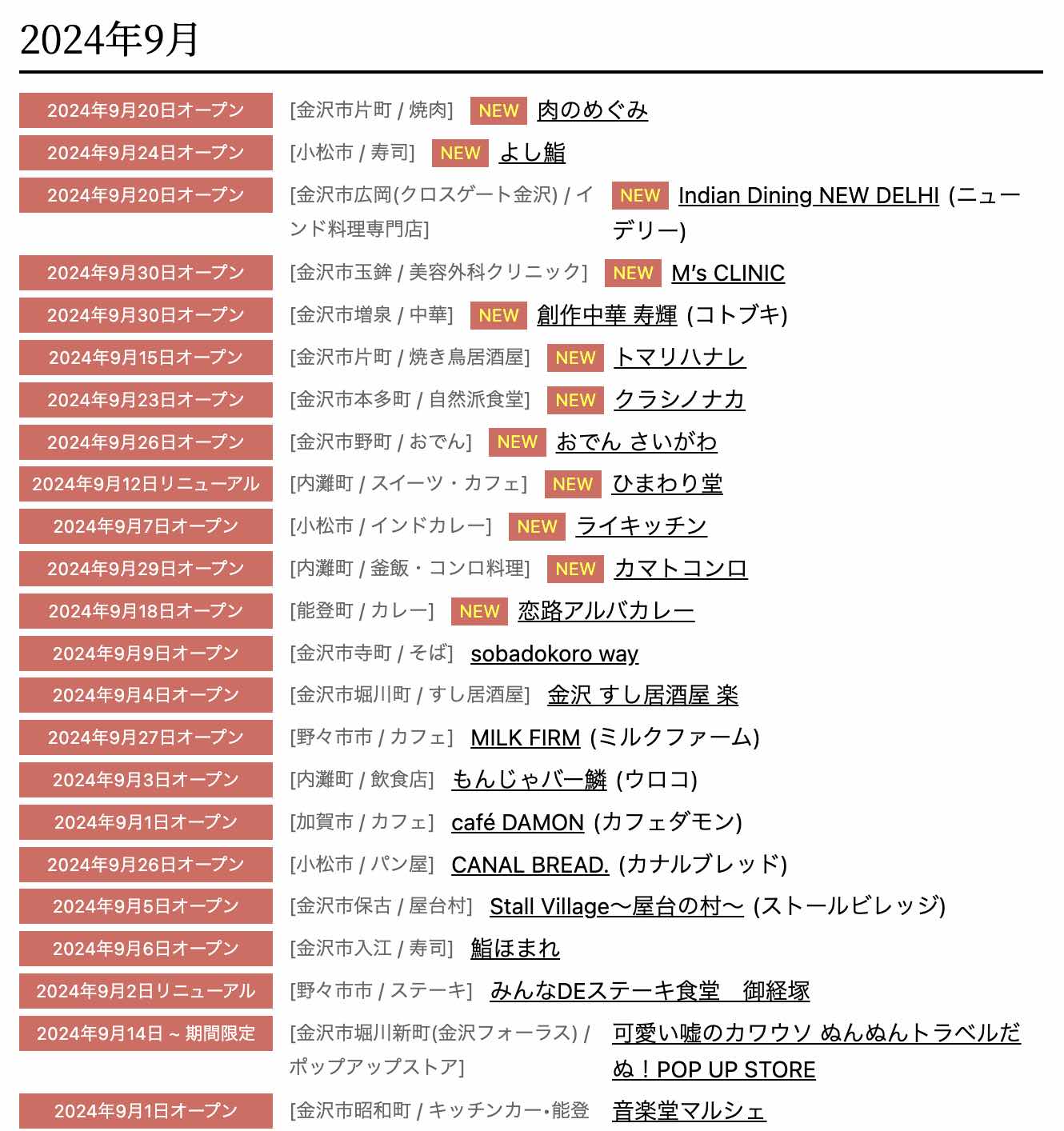 石川県内の新店舗まとめ【2024年8〜9月】