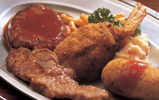 金沢の『自由軒』は、旧東の廓のほんのとば口にあり、地元の人はもとより観光客にも人気が高く、老舗の洋食屋らしい風格と上品さがある。市の観光課が力を入れて整備したこともあって、この界隈もすっかりきれいになった。そのぶん昔の情緒はやや失われたが、この店のメニューはほとんど開店当時のまま。定食などの価格はそれなりに上がったが、ボリュームといい、丁寧な仕事といい、変わらぬ味を保っているのはさすがである。