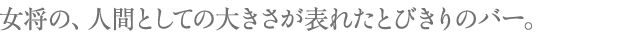 ひがし茶屋街のいっとう奥まった所に在り、一見客はなかなか入りにくい店構えだが、馴染むひとにはこれほどのバーは滅多にあるものじゃない。一階はカウンター、二階は座敷となっていて、いずれも靴を脱いで上がる。カウンターはこたつ式に足を下ろすことができるので、たとえは不適切かも知れないが、なにやら情人の家に帰ってきたみたいに妙に落ち着いてしまう。
