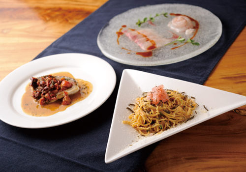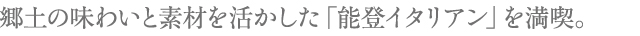 「能登の昔ながらの製法で作る自家製の〈いしり〉や、柚子と唐辛子、塩を合わせ熟成させた〈ゆうなんば〉などの伝統調味料を活かし、地元食材をイタリアの手法で表現しています」とは、主人のベンジャミンさん。宿泊の場合は、イタリアンの夕食と、朝は能登らしい和食、両方のスタイルを楽しめる。但し、1日4組限定のため、早めの予約がのぞましい。