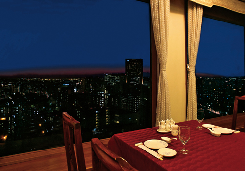 全国の有名コンクールでの受賞歴も持つ阿部料理長の料理と金沢有数の絶景で知られる。武蔵ヶ辻にある『ANAホリデイ・イン金沢スカイ』の17階。フロアの中心に厨房を据え、それを囲むようにテーブル席や個室が配されている。ゆえに、金沢の街並みを見渡す360度の眺望に恵まれているのだ。