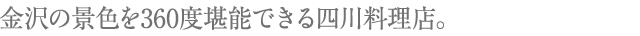 夜は街の灯りが浮かび上がり、またひと味違った雰囲気。正統派の四川料理に舌鼓を打ちながら、窓越しの景色に目を遊ばせたい。ランチにも、またアラカルトでも楽しめる。
