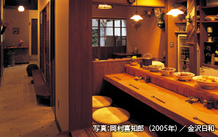 築80年の民家を活かした建物は、一瞬見過ごしてしまいそうなほど密やかな佇まいである。町家独特の通り土間や光採りの坪庭がそのままに残る店内には郷愁が漂い、表通りの喧騒も日々の気忙しさも、すっかり忘れさせてくれる。