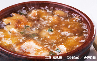 開店から今年で37年を迎える金沢で最も古い歴史を持つスペイン・地中海料理の店。気候や風土などの土地柄によって、食材や味わいに特色の違いが出るスペイン。ここでは、そんなスペイン各地で親しまれている代表的な地方の料理を楽しむことができ、特に最高級品の生ハムや、バリエーションに富んだパエリアに定評がある。店主の松田さんは、度々スペインで最新の本場の味に降れ、自身の料理に反映。パエリアの旨さもまた常に進化を続けている。多彩な料理も然ることながら、100種類以上の銘柄が揃う豊富なワインも魅力。料理に合わせてセレクトし、様々なワインの味を楽しみたい。