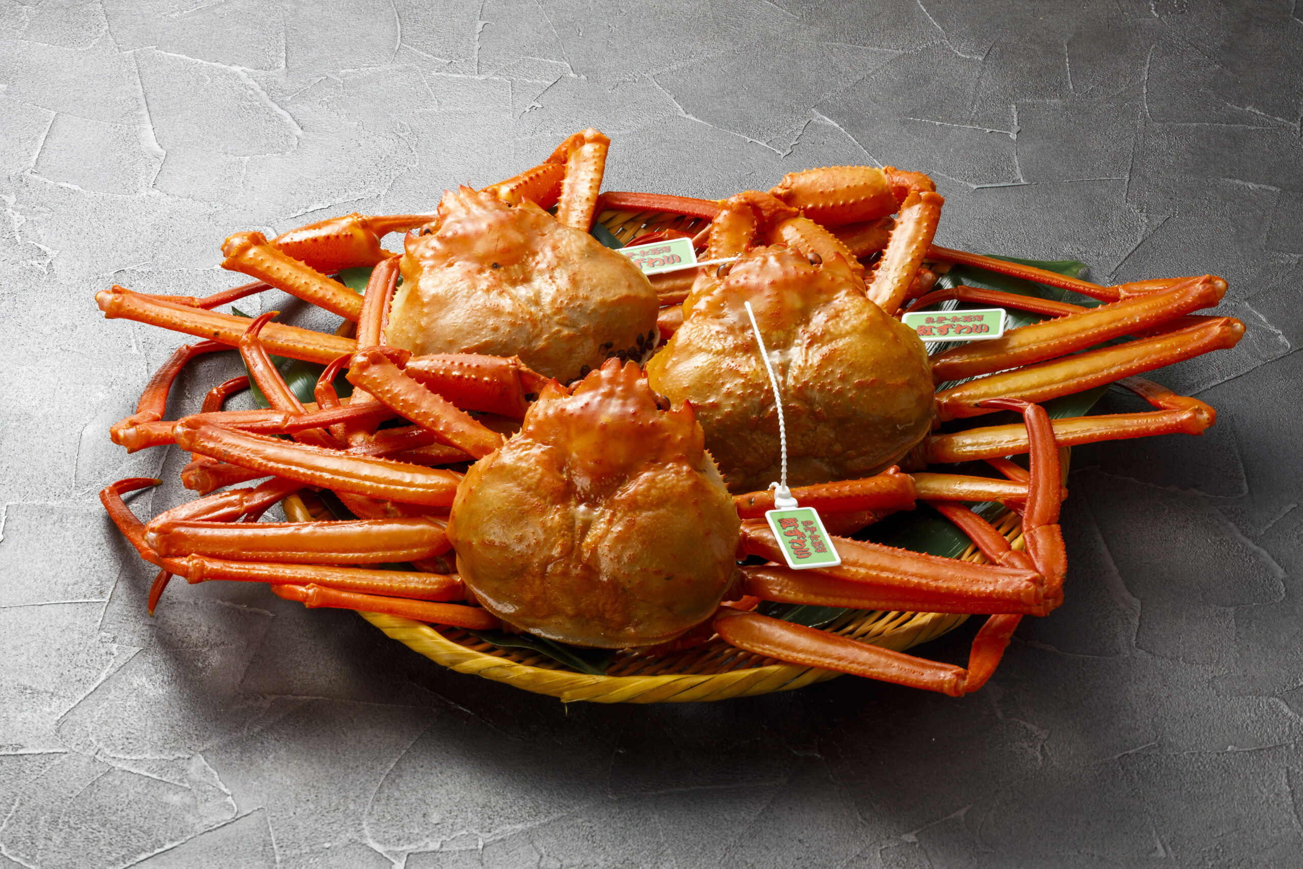 富来漁港で水揚げされる海の幸。 紅ズワイガニが近年人気。