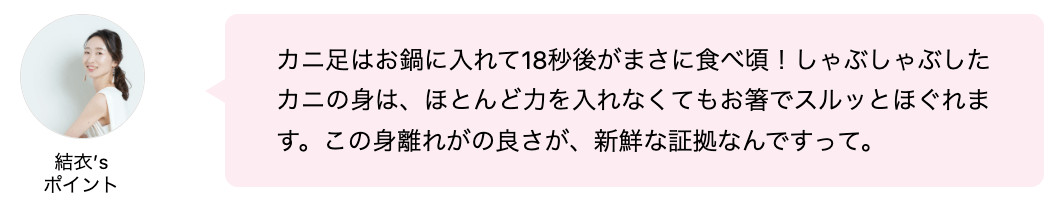 こんにちは、金沢日和編集部・台湾出身のkumaです。 連載「kumaの金沢散歩」を担当し、日々、様々な発見をして楽しく過ごしています。わたしにとっての新発見もあるけれど、地元の方にとっては金沢の再発見につながることもあるそうです!これからも、魅力あふれるこの土地を一緒に巡り続けられると幸いです。 どうぞよろしくお願いいたします。 同じ「カニ」であっても、品種や地域などによって食べ方も違うのが興味深いですね。台湾にいた頃、港町の市場で獲れたての「萬里蟹(バンリガニ)」をよく見かけました。市場周辺には海鮮炒めのお店がたくさんあって、カニの旬になるといつも賑わっていました。中国は、日本では「上海蟹」と呼ばれている「大閘蟹(ダージャシエ)」が有名で、カニが寒性で体を冷やすため、紹興酒、老酒(長期熟成させた黄酒)の熱燗や生姜茶など体を温める飲み物と一緒に食べることが多いです。 北陸のカニが有名なのは存じておりますが、写真などでしかみたことがなく、知識が乏しいです。なんと、金沢では、旬に関わらず、生きたカニを使った料理を一年中提供する(要予約)お店があるらしいので、これは探究せざるを得ないですね。この度は特別に、ひがし茶屋街付近の梅ノ橋のそばにある居酒屋割烹『田村』に見学させていただきました。 『田村』では、生きたカニを目の前で捌いてくれるので、新鮮なカニのお刺身が食べられるそうです。初めて聞いた時は、思わず「えっ、カニを…生で…?」とこっそり思ってしまいましたが、日本人はなんでも刺身にして生で食べるのが好きなのですね。先輩から他にも、「たくさんの有名人が訪れたことがあるから推しの写真あるかもよ」や、「運が良ければご主人のマジックが見れるかもよ」など、ここは何屋さんなの? と思うような形容もありましたが、行ってみれば居酒屋さんの気軽さと割烹の美味しさが味わえるこだわりあるお店でした。2階には橋の風景が映えるお部屋があり、夜になるとライトアップの景色を楽しめるので人気だそうです。 金沢に来る前に、よく東京のJRの駅で北陸のカニの広告を見かけていましたが、こんなに立派な実物を目の前で捌かれるのには驚くばかりです。 この日に出されていたのは「金沢港」の青いタグ付きの加能ガニでした。手のひらサイズのカニしか見たことないので、カニの足には「指サイズ」の印象を持っていたのですが、目の前のカニの足は、わたしの顔より大きく、しかも素早く動いていました。日本海育ちのカニの特徴でしょうか? そしてご主人のカニを捌く技にも目が離せません。躊躇なく足を落とす包丁の動きを目で追うのが精一杯。気がつくとさっきまで生きていたカニがすでに綺麗に捌かれてお皿の上に並べられていました。 そしてカニを堪能できるうえに、魅力的な料理がいっぱいあります。「カニしゃぶコース」のしめの、独自開発した名物「田村うどん」は、茹でると透き通ってもちもちになって、たくさんのファンが続出しているらしいです。通販でも販売中で、お土産として買って帰る人も多く、一時期「『田村』と言えばうどん」という噂が出たほど人気なので、お店に行ったら食べるしかないですね。他にものどぐろや治部煮など、石川県ならではの料理もあり、外国語メニューも対応しているので、旅の思い出や記念にも最適な一軒です。お腹を空かせてから行きましょう。 ■体験記事はこちら ■ 居酒屋割烹『田村』 住所/石川県金沢市並木町2-18 TEL/076-222-0517 営/17:00〜22:30(L.O.22:00) ※コースは前日までに要予約 ※昼の営業は要予約(6名以上で11:30〜14:00営業) 休/水曜※連休・祝日の場合は営業 席/46席 (1階:カウンター8席・小上がり8席、2階:掘りごたつ3部屋) P/なし ※インボイス登録あり 公式サイトはこちら 公式Instagramはこちら ■担当している海外SNSはコチラ☆ 小紅書(RED)|簡体字中国語(中国) Facebook中国語|繁体字(台湾/香港) Facebook英語