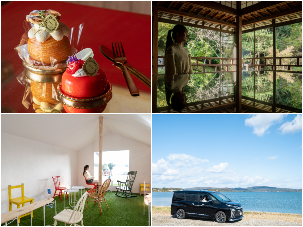 今回は、高級旅館が立ち並ぶ和倉温泉で有名な七尾市・能登島周辺をナビゲート。地元食材を美しいスイーツで提供する『パティスリー アメリ』や、稀少な“御便殿”を拝観できる『青林寺』、能登島のおしゃれなカフェ『pi pi pi pizza(ピピピピッツァ)』を巡りました。