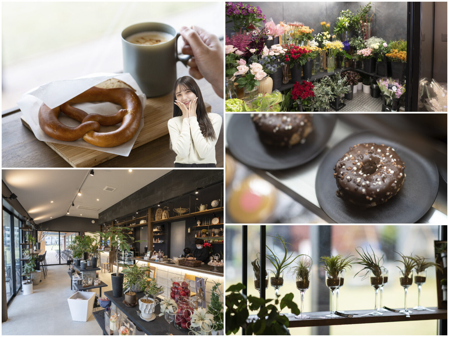 フラワーショップ&カフェ『hana-noya café-no-ya』では、ドリンクと簡単なフードを提供。フードは公園で片手でも食べられるようにとチョイスされており、人気ナンバーワンのフレッシュバタープレッツェルはもっちりとした食感とバターの風味がたまりません。席は店内のカウンターとテラス席のほか、有料でかがやきITルームスペースを利用できます。フラワーショップでは観葉植物やエアプランツなどが充実。生花用の冷蔵庫はスペースが広く、鮮度の良い花を選びながら自分で組み合わせを考えるのも楽しいですよ。