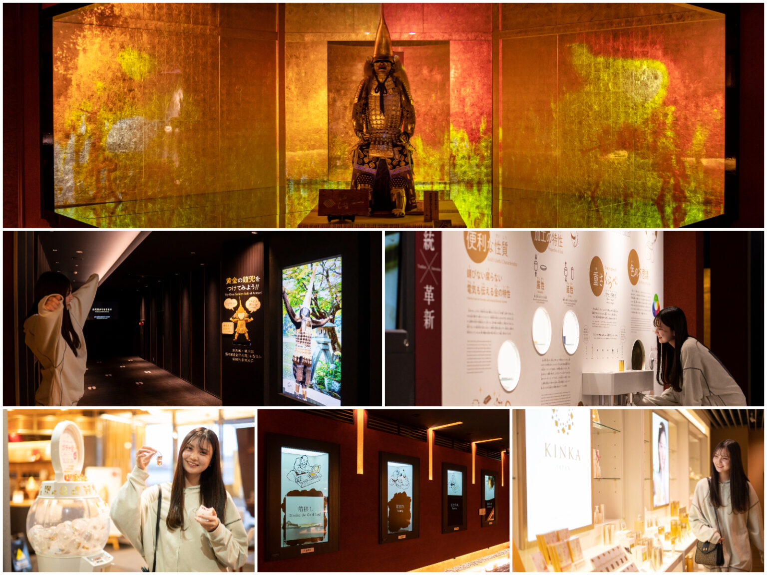 地下にある体験型ミュージアムで金箔について楽しく学ぶ。