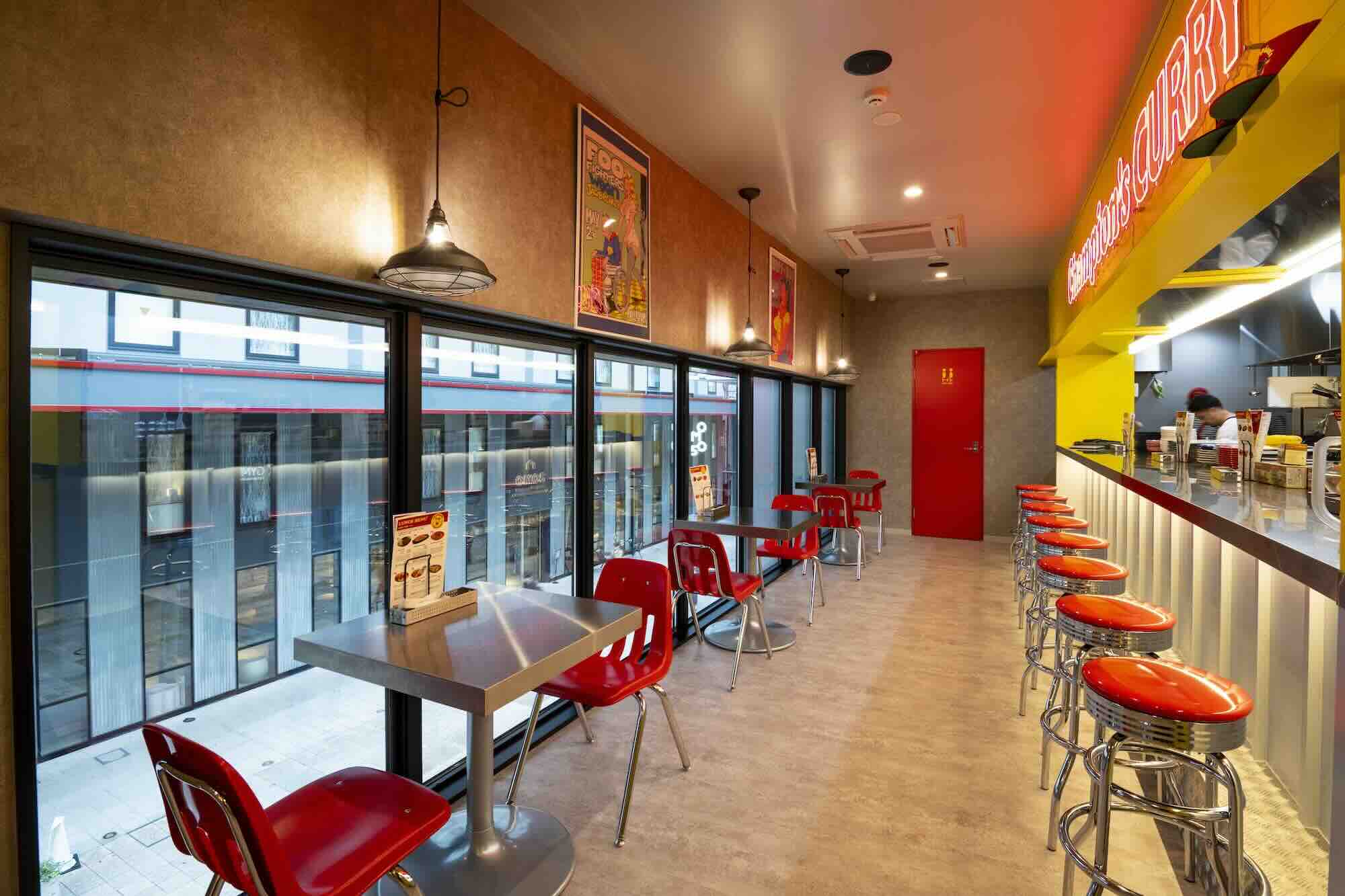 アメリカのダイナー(食堂)をイメージしたポップな店内で、サクサクのロースカツが載った定番のLカツカレーやナポリタン・ミートソースのスパゲッティなど、スパイスを効かせた料理が楽しめ、ランチタイムにはソフトドリンクが付く。