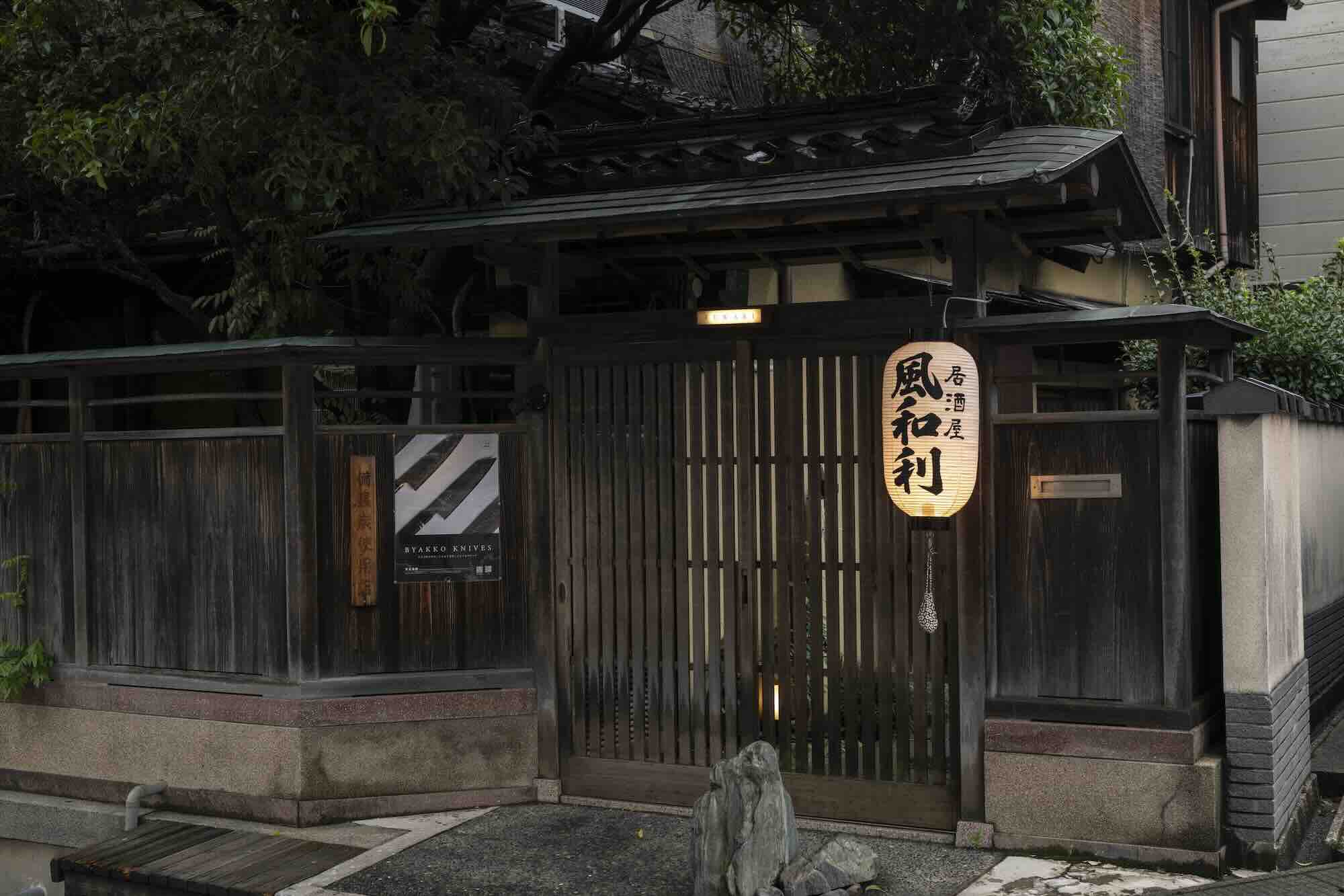門口に店名の書かれた提灯がなければ、普通の二階建て町家と見まがう佇まい。尾張町の裏通りにひっそりと建つ『風和利』は、古い町家をリノベーションしており、金沢情緒ただよう居酒屋だ。