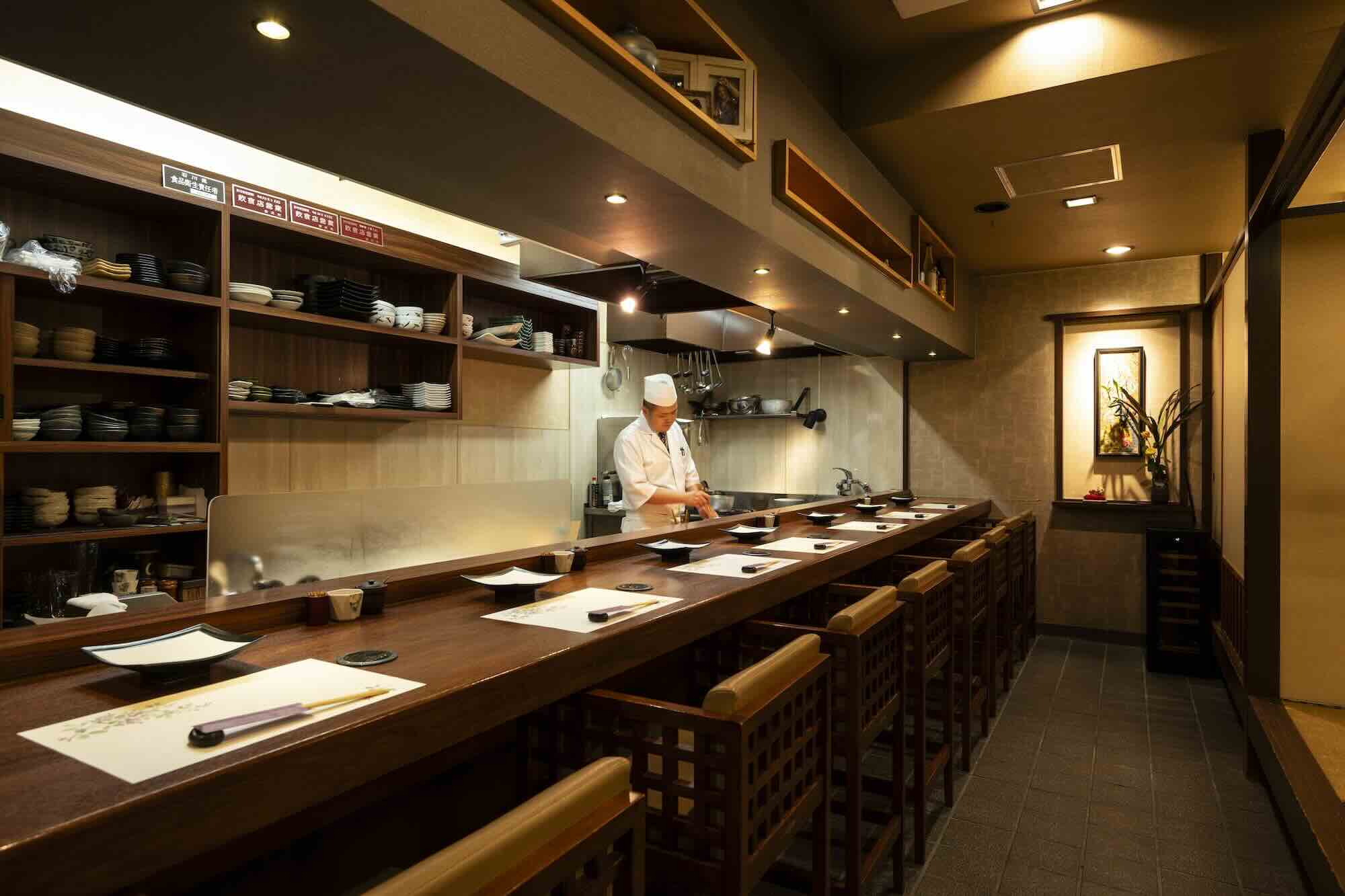 天ぷらは、素材によって衣の配合や揚げ温度を変えることはもちろん、客の箸の進み具合に合わせて一つずつ揚げていく。客に目が行き届くように、と席はカウンターのみ、鍋から響く揚げ音がBGMだ。