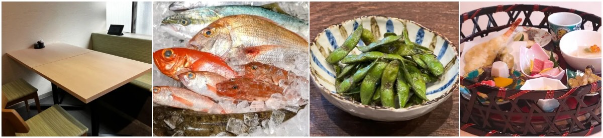 1階はカウンター席の眼の前にあるネタケースには、板長が目利きした鮮魚がズラリ。地元北陸で水揚げされたきときとの魚介を、寿司や刺身で提供している。ランチのおすすめメニュー「加賀てまり かご盛膳」(3,000円)は、九谷焼を使用した贅沢な盛り付けで観光客にも人気。刺し身や天ぷら、板長自慢の煮物に加えて、ご飯は寝かせ玄米を提供している。また、寿司9貫に天ぷら、胡麻豆腐、茶碗蒸し、味噌汁が付くコスパ抜群のお寿司ランチ(3,500円)は、金沢駅近郊で気軽にいただける寿司ランチとして好評だ。ランチは予約制となっている。