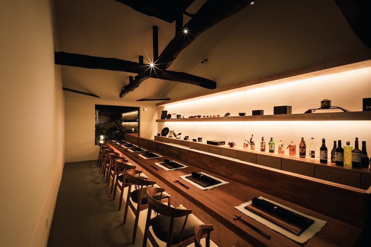 1階では「金沢おでん盛り合わせ」や「加賀野菜金時草のポテトサラダ」など、リーズナブルな価格帯のアラカルトが中心。2階は予約制で、先付から甘味まで10品ほどのコース料理を提供。能登牛や輪島の河豚、加賀野菜など、地元食材を使った料理が多いので、地元の日本酒と共にいただくのがおすすめだ。なお、歴史の重みと職人の技が光る受注生産の伝統工芸品から、若手作家のモダンなデザインの皿まで、コースの器の総額は約200万円にもなるのだとか。繊細で美しい蒔絵が施された輪島塗の椀は、驚くほど軽くて薄いのに、手に持っても中身の熱さを全く感じさせない。実際に使用することで伝統工芸の魅力と凄みを体感できるはずだ。