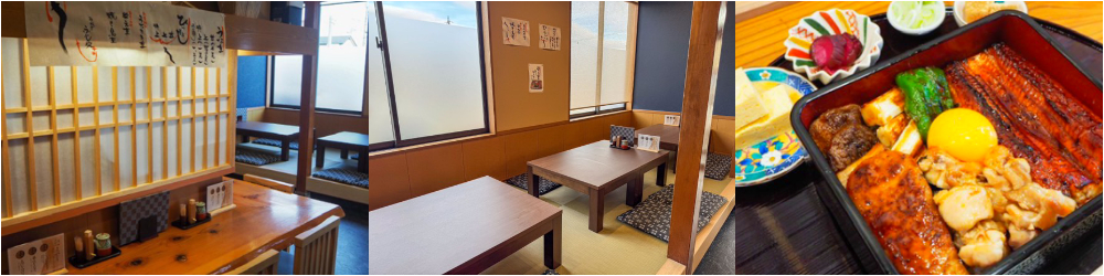 2024年11月にオープンしたうなぎ専門店『うなぎ ふじ栄』。特別な日だけでなく日々の小さなご褒美としても、ごちそうである鰻を楽しんでもらえるようにと、厳選したニホンウナギを丁寧に調理している。ふっくらとした鰻と香ばしいタレの組み合わせが絶妙な「うな重特上」や、味の変化を3段階で楽しめる「ひつまぶし」、鰻と焼き鳥の贅沢なハーフ&ハーフが魅力の「栄え重」など、食欲をそそるラインナップ。最大12名まで過ごせる座敷席は、親戚や会社の宴会などでの利用におすすめ。