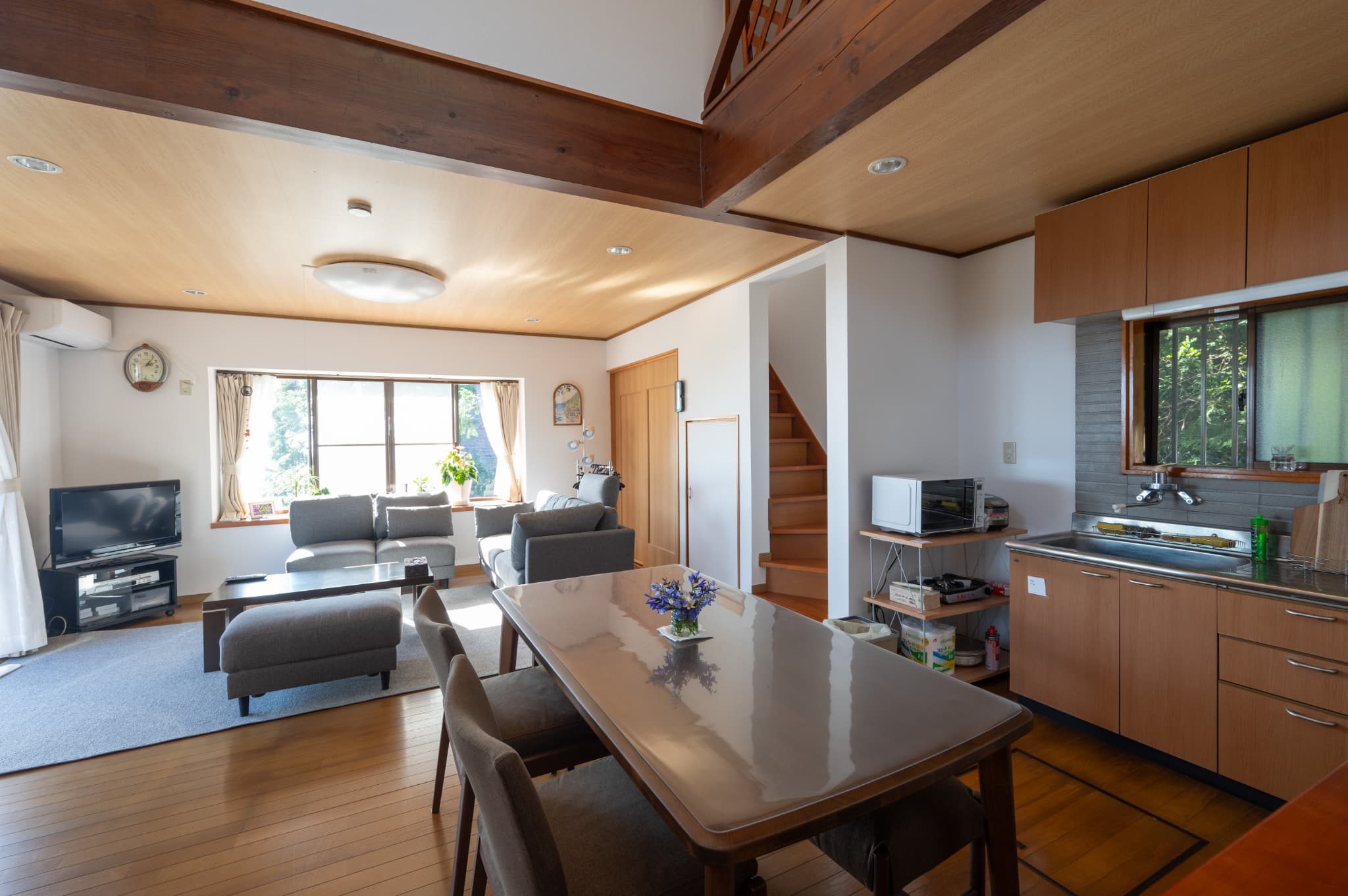 吹き抜けが心地よい居間は、気負わない温かさに溢れており、思わず「ただいま」と言いたくなる佇まい。肩の力がふっと抜けるような穏やかな時間が楽しめる「能登の小さな我が家」に足を運んでみては。