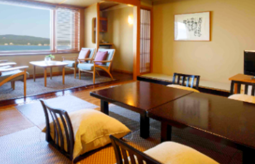 和倉温泉の高台に建ち、ほぼ全室がオーシャンビュー。七尾湾の移ろいを眺めながら入る露天風呂は、能登島や能登島大橋まで望む開放感が魅力だ。湯は保温・保湿に優れ、湯上がりもしっとり。海景と湯の相性をじっくり楽しめる。
