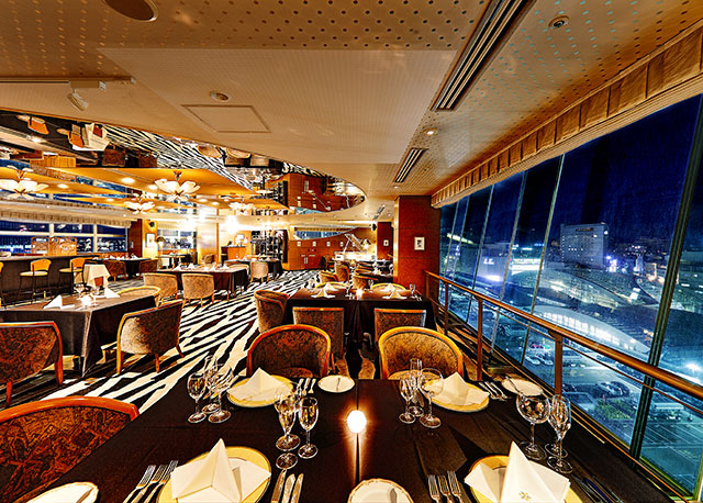 ホテル最上階から見渡す美しい夜景と食事を、贅沢に楽しむ。