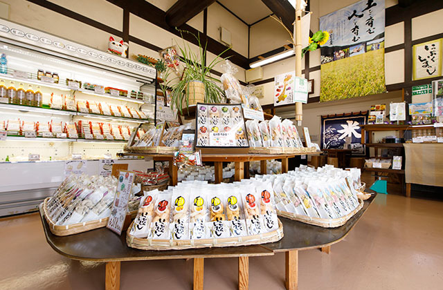 覚右衛門を代々襲名する小松の米農家。20代目が営む直売店では米はもちろん、こだわりの調味料、県産食材を練り込んだかきもち、オリジナルソフトクリームが人気。