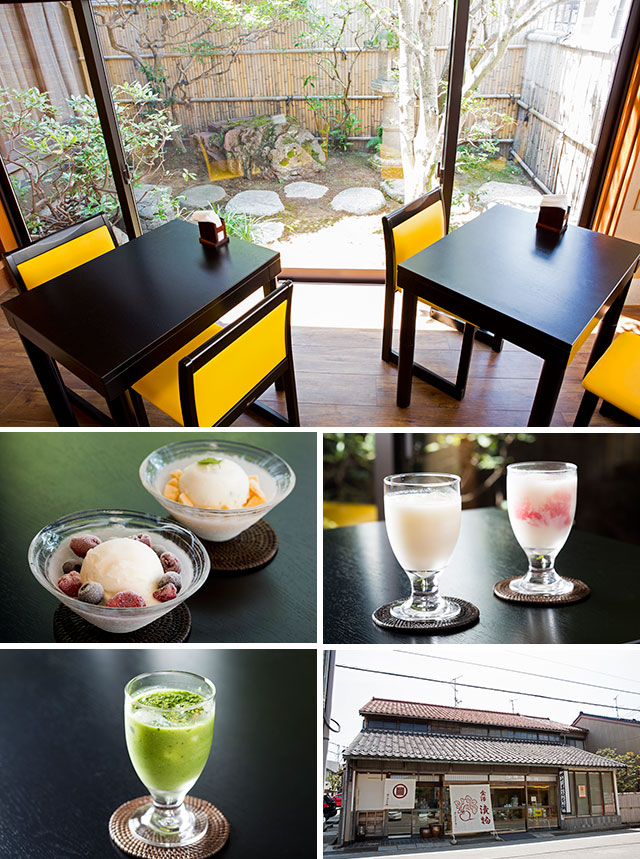 金沢の発酵文化の多様性と奥深さを広く知ってほしいということで、発酵カフェと名付けた。「かぶら寿し」などで培ってきた糀についての知見をいかして、甘酒や甘酒ソーダ、ジェラートをオリジナル・メニューとして開発した。体に優しい発酵スイーツメニューの完成である。明治時代から続く老舗の坪庭を愛でながら、ほっと寛げる新しいカフェだ。