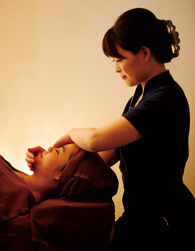 顔は筋肉が凝り、リンパの流れが悪くなりやすく、疲れをため込みやすい部位。『En&Ri』のフェイシャルでは、デコルテからしっかりとハンドマッサージを行い、特殊なフェイス用吸盤で筋肉や脂肪にアプローチをかける。リンパの流れをよくした後に、時間をかけて顔を解していくのでリフトアップや肩こりにも効果的。施術後は、表情も明るい印象に変わるとリピーターも多いメニューだ。