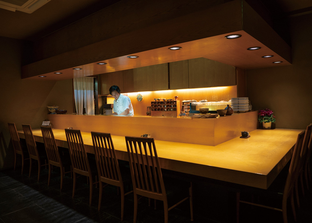 多彩に取り揃えた日本酒と手の込んだ一品料理が評判。「お客様を飽きさせることのないよう、常に工夫を凝らしています」とは店主の寺内吉國さん。基本に忠実でありながら、日々、新しい料理を追求する姿勢が、食通の大人たちを唸らせている。人気のランチコースはメイン料理が三品つく贅沢さがウリだ。メニュー内容は日替わりで、前菜、お造りに続く、小鉢とメインに何が出るかは来てからのお楽しみ。冬は一人鍋が入ることも。時季の食材を様々に調理し、豊富な品数で食べる楽しみを存分に味わわせてくれる。