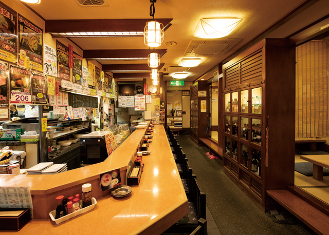 お品書きが壁いっぱいに張られた、昔ながらの懐かしい雰囲気の店内。味も値段も大満足の居酒屋料理が豊富に揃う『わり勘』は、そんな人情味溢れる下町風居酒屋の決定版。地元の常連さんが多い穴場的な感覚が、程良い居心地の良さを生み出し、最近は若い女性客からの人気も高い。座敷や小部屋が充実しているのも嬉しい限り。
