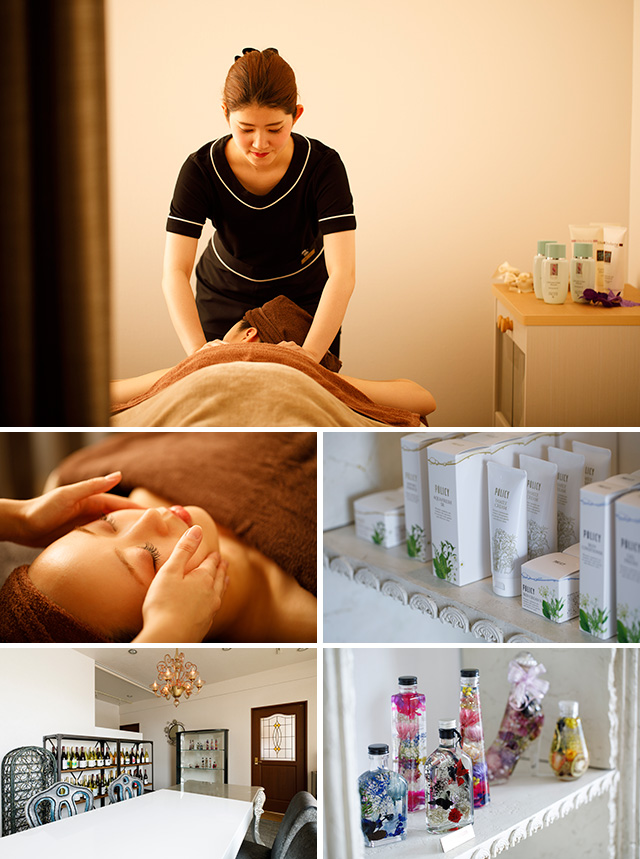 また、同店は、県内初の「ポリシー化粧品」の特約店。ポリシー化粧品は、エステティックサロン用の化粧品開発から生まれた肌トラブル改善に効果が期待できる高品質なオーガニック化粧品。天然由来の成分を含んだ化粧品で今までにない肌感を得ることができる。