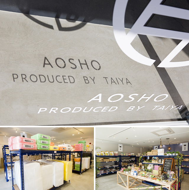包装用品の従来の売り先は各種メーカーやスーパー、食品専門業者だが、このショップは、金沢市青果食品商業協同組合の包装資材販売業務を引き継ぐ形なので、場所は中央卸売市場通り、店名は「青商(AOSHO PRODUCED BY TAIYA)』とした。
