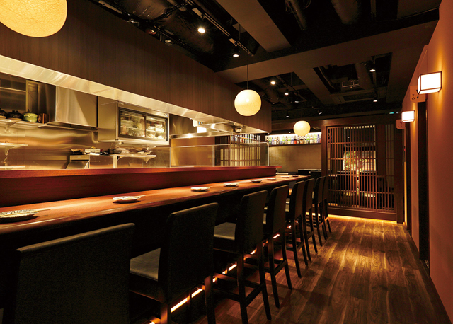 シックな内装としっとりと流れるジャズが落ち着いた雰囲気を醸す焼鳥店。厳しい飼育基準の下で育てられる「七谷地鶏」を、京都府亀岡から丸鶏のまま仕入れている。そのため、鮮度抜群の正肉や内臓を取り扱うことができるので、希少なレア部位も串や鍋、揚げ物としてオンメニューしている。器使いや季節感のある盛り付けにも豊かな美意識が感じられる一軒だ。