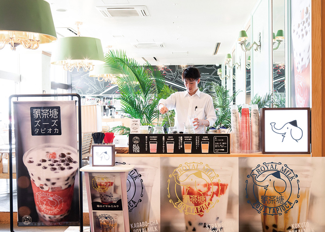 2019年4月下旬にオープンしたばかりのタピオカドリンク専門スタンド。沖縄県産の黒糖、フレッシュな苺の果肉、加賀棒茶の香り高い自家製シロップを用いた3種類の看板ドリンクには、店内で炊き上げる大粒の生タピオカをたっぷりと入れてくれる。また、濃厚でクリーミーな特製ロイヤルミルクを使っているため、時間がたっても味がゆるまないとか。氷の量や甘さを好みでアレンジできる上、プラス100円でタピオカを追加する「追いタピ」もできる。2019年夏新登場のジャスミンティーの爽快な風味は、サッパリ党にも評判だ。