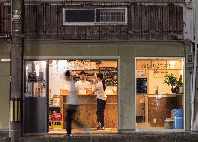 歴史的建築物が点在する尾張町の目抜き通りに面する小さなクラフトビールスタンド。観光客が多く行き交う立地ながら、客の大半が地元民だという『尾張町ビヤスタンド』を仕切るのは、店主・喜きざわたつや澤達也さんだ。