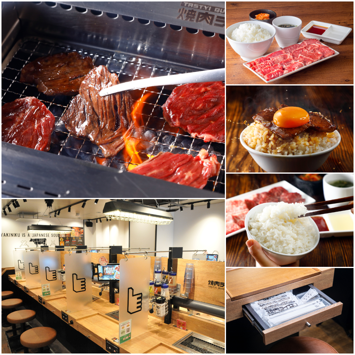 北陸エリア初出店・国内74店舗目となる新感覚の焼肉ファーストフード店『焼肉ライク 金沢諸江店』がついにオープンする。カウンターメインの1人席には、1人1台の無煙ロースター、注文用のタッチパネル、お冷やお箸、タレなどが準備されており、ほぼ非接触でオーダーから食事、支払いまでが完結する。セットメニューは15種類あり、焼⾁とご飯(国産米ひとめぼれ)、わかめスープ、キムチとなる。一番手頃な「バラカルビセット(100g)580円」のほか、部位や量が自由に選べるセットメニューも充実。単品メニューは各種肉50g〜選べるほか、ちょい足しにカレーライスなどもあるのが魅力。注⽂から3分以内に提供されるので、サクッとスピーディーに焼肉を楽しめる点も嬉しい。10:00~23:00の通し営業なので、朝焼肉からランチ、夕食までいつでも好きな時に行けそうだ。テイクアウトメニューも豊富なので気軽に利用したい。