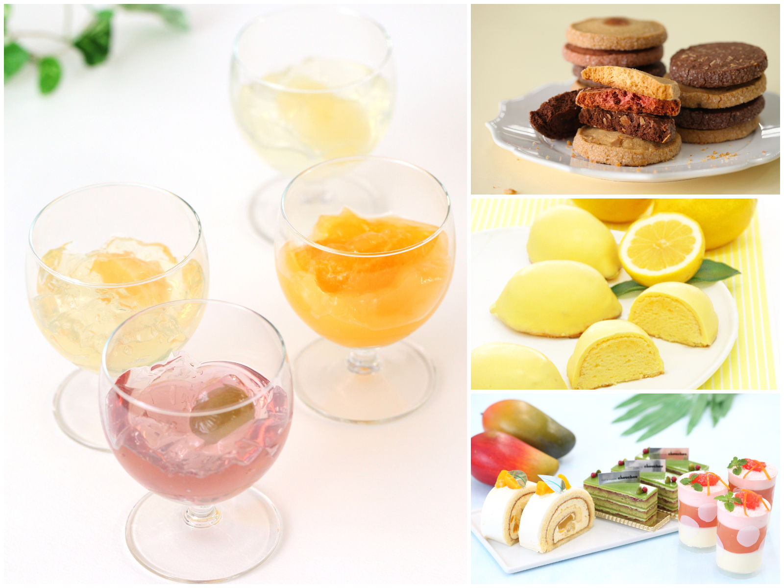 完熟果実のジュレや爽やかなケーキなど、サマースイーツが勢揃い。