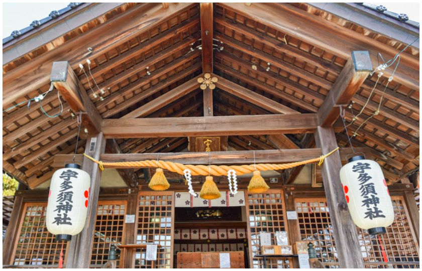 ひがし茶屋街の東端に位置する『宇多須神社』は、明治6年まで加賀藩が藩祖利家公を密かに祀っていた元の「卯辰八幡宮」。現在は毘沙門天も祀っており、御朱印には毘沙門天の使いとされるムカデの朱印が押される。