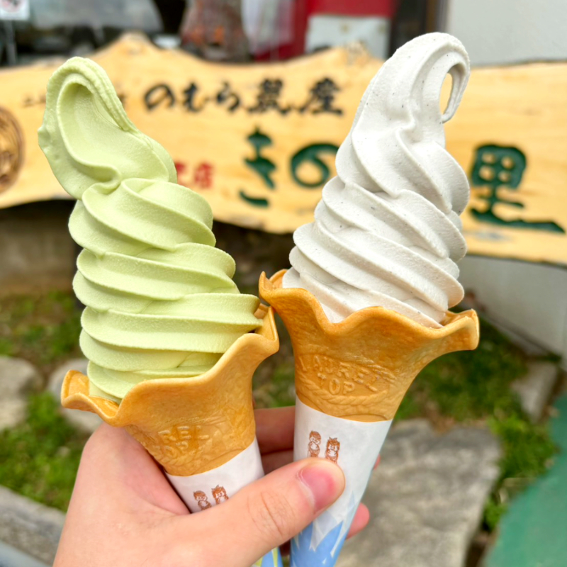 小松市中心部から車で約10km、山あいにひっそりと佇む知る人ぞ知るソフトクリームの名店。メニューは3種類どれもインパクト大ながら、「また食べたい」と思わせる中毒性があります。農家直営だからこそ実現できる、素材本来の味を活かしたピュアな美味しさ。アイス好きはもちろん、身体にやさしい食材を求める方にも自信を持っておすすめします。